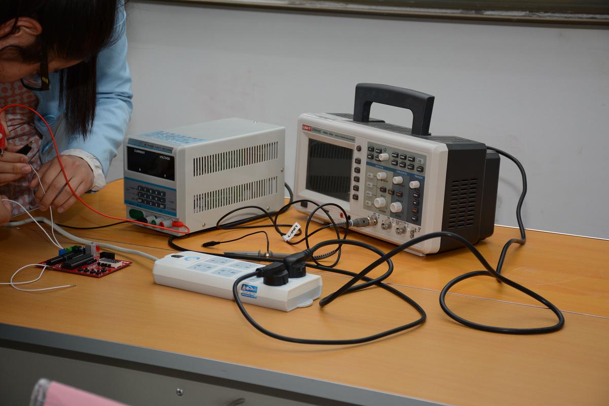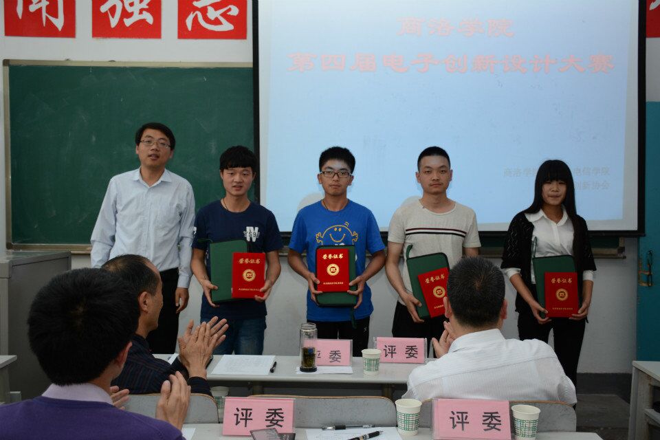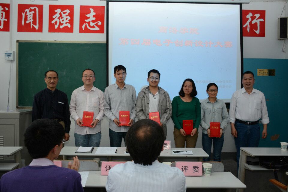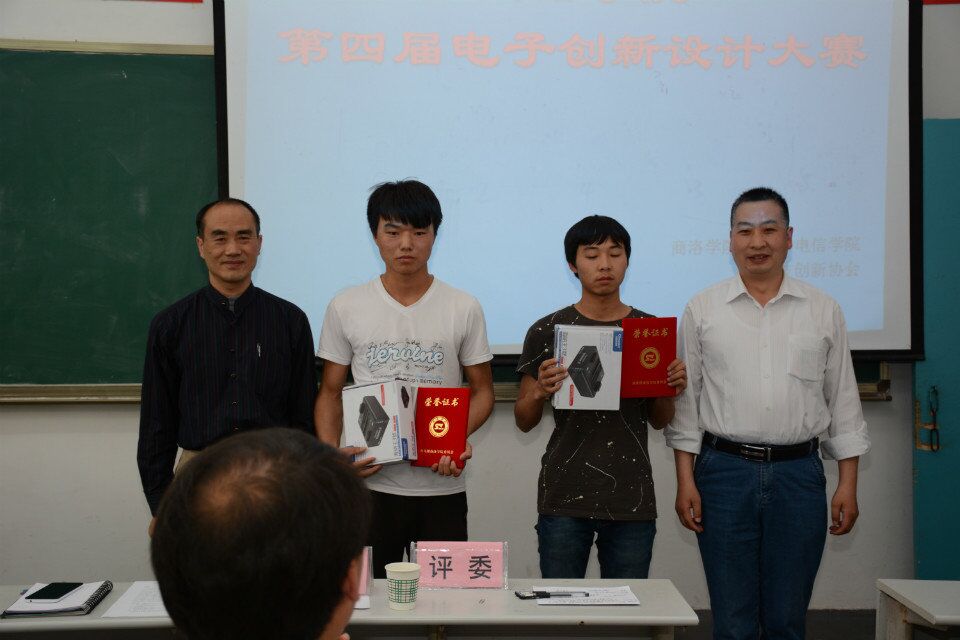 竞赛题目范围主要为电子测试类、电子控制类、电气功能实现类和通信类。根据电子创新设计大赛的安排,竞赛分初赛和决赛两部分,通过前期初赛挑选出的12件作品参加了本次决赛。决赛的评委由7名老师和2名员工(第三届电子设计大赛一、二等奖获得者)组成。作品评分标准主要有功能实现的完整性、作品创新性、难易程度、作品演示过程、回答问题情况和员工表述能力及PTT制作水平等方面。