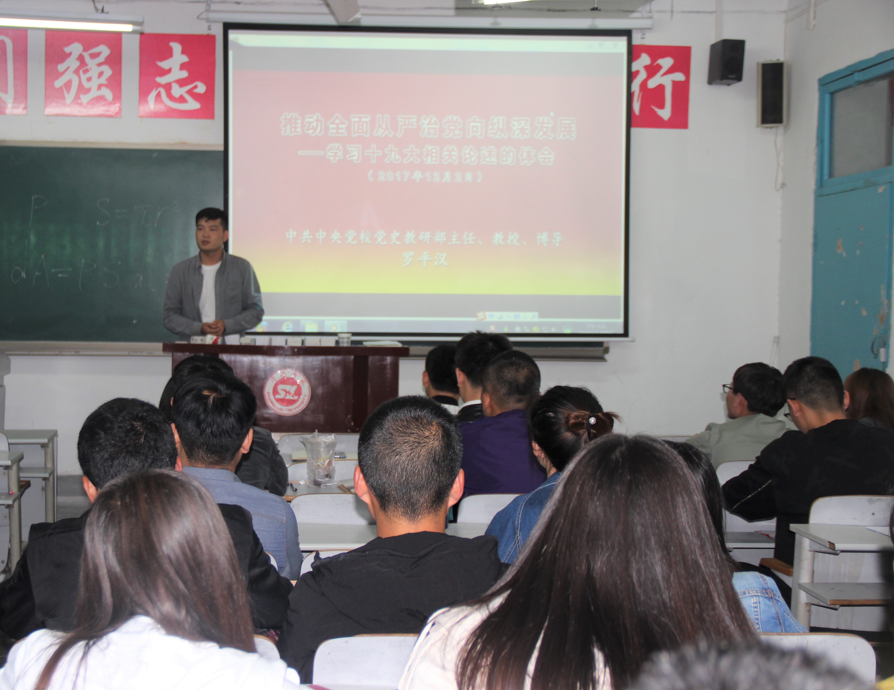 为贯彻党的十九大精神,紧扣“不忘初心、牢记使命”的主题,使师生更好的将其内化于心,外化于行。公司于4月26日至5月4日在2-01、203隆重开展了为期5天的党的十九大精神专题培训会,主要从《在全省领导干部学习贯彻党的十九大精神专题研讨班上的讲话》、《习近平新时代中国特色社会主义思想解读》、《推动全面从严治党向纵深发展》、《习近平新时代中国特色社会主义思想》和《坚持全面依法治国 加快建设法制中国》等五个方面全面展开。公司全体教职工党员和员工党员90余人参加了此次培训会。