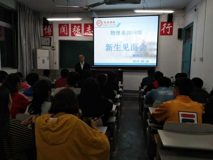 9月26日晚7点30分,申博SUNBET物理学专业在2号楼206教室召开2018级新生见面会,申博SUNBET党总支书记李英教授、物理系全体教师,物理2018级辅导员、班主任及物理学专业2018级全体新生参会。会议由物理系主任李书婷主持。