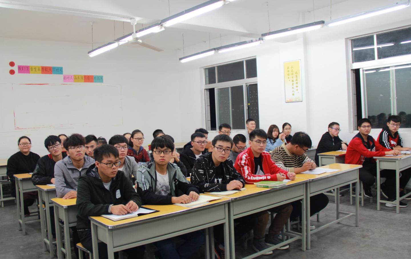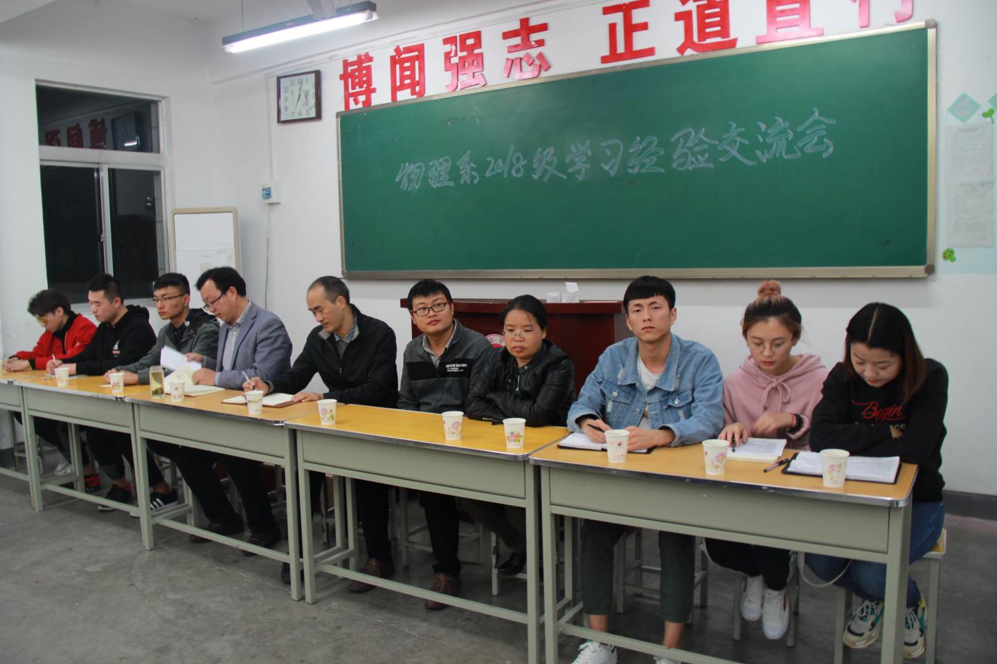 10月9日晚,申博SUNBET物理系在2#215教室组织召开2018级学习经验交流会,公司党总支书记李英、经理袁训锋出席此次会议,物理系主任李书婷、教师马发民携新生及老生代表参会。此次会议由物理1801班学习委员主持。