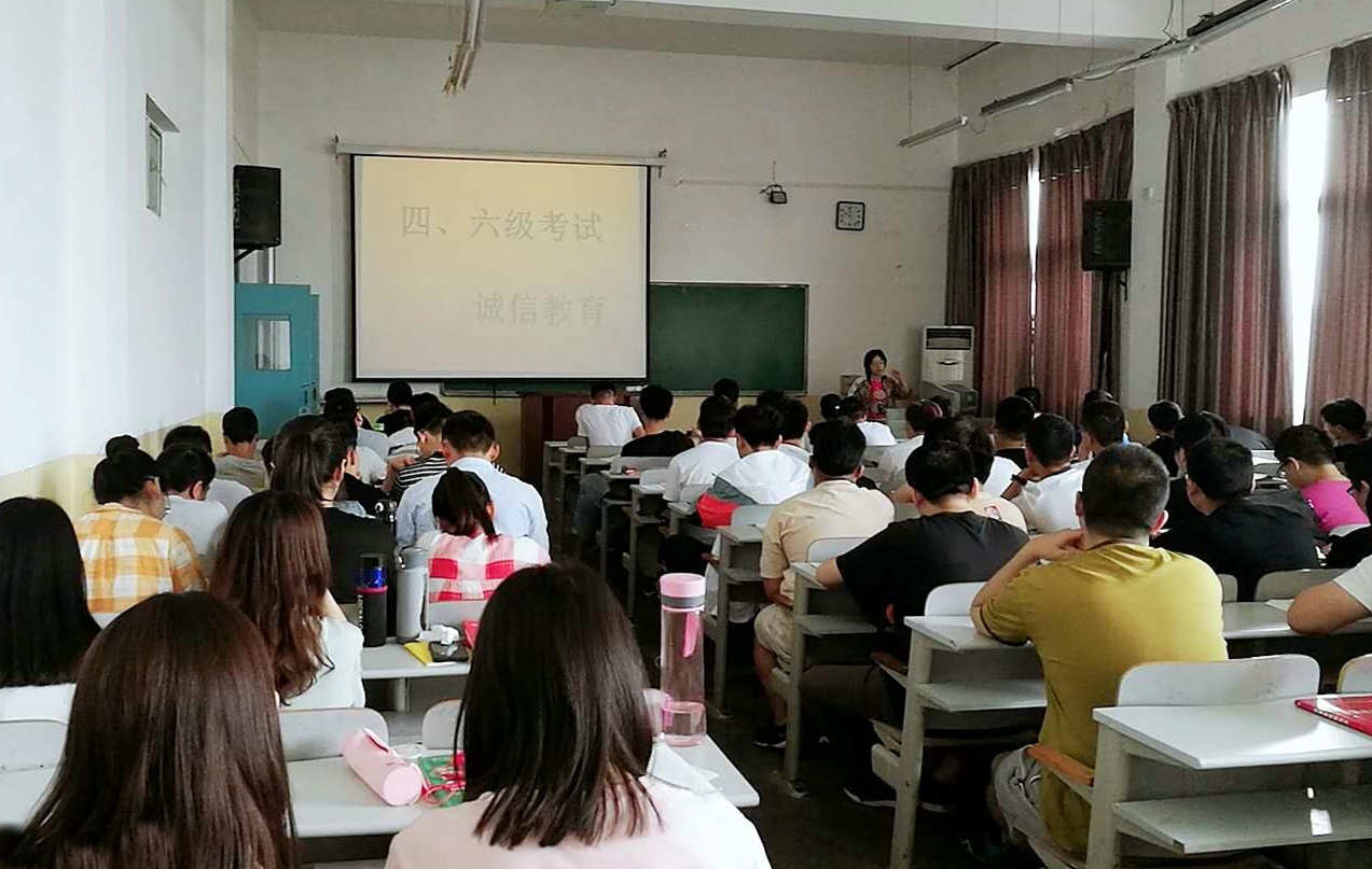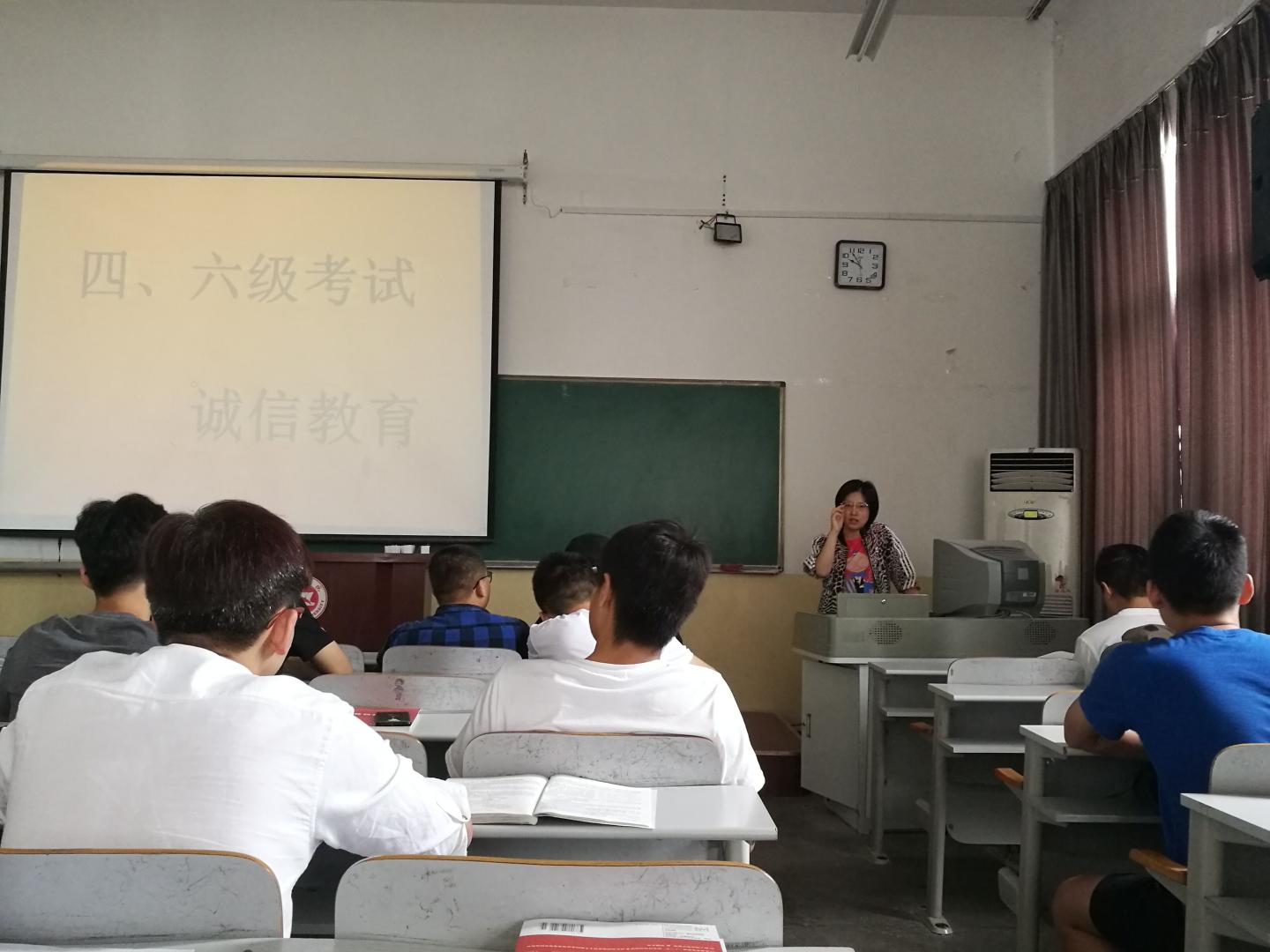 为迎接即将到来的四六级英语考试及期末考试,号召公司员工积极备考、诚信考试,6月12日,申博SUNBET辅导员沈光美、唐龙龙、任艳老师组织非毕业生班级于二号楼分别召开“诚信应考”主题班会。