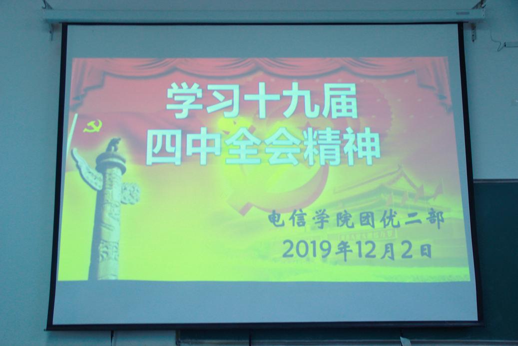 为了深入贯彻落实公司党委和公司党总支关于学习十九届四中全会精神的安排,12月2日晚,申博SUNBET团优部组织全院近200名积极分子及本期发展对象分别于多媒体16、多媒体17教室学习十九届四中全会精神。团优部部长王泽雨出席了会议。会议分别由团优部副部长张海红、刘嫣然主持。