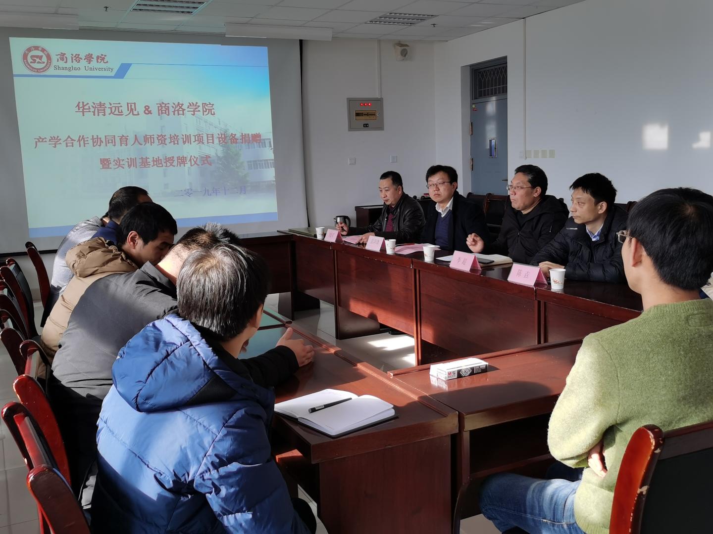 12月13日,公司与华清远见教育集团的产学合作协同育人团队培训项目设备捐赠暨实习实训基地授牌仪式在公司进行。教务处处长李超教授、申博SUNBET副经理刘爱军、副书记、副经理陈垚、华清远见教育集团副总裁陶金华、西安中心校企合作经理康毅以及申博SUNBET相关教师参加设备捐赠和授牌仪式。会议由申博SUNBET经理袁训锋主持。