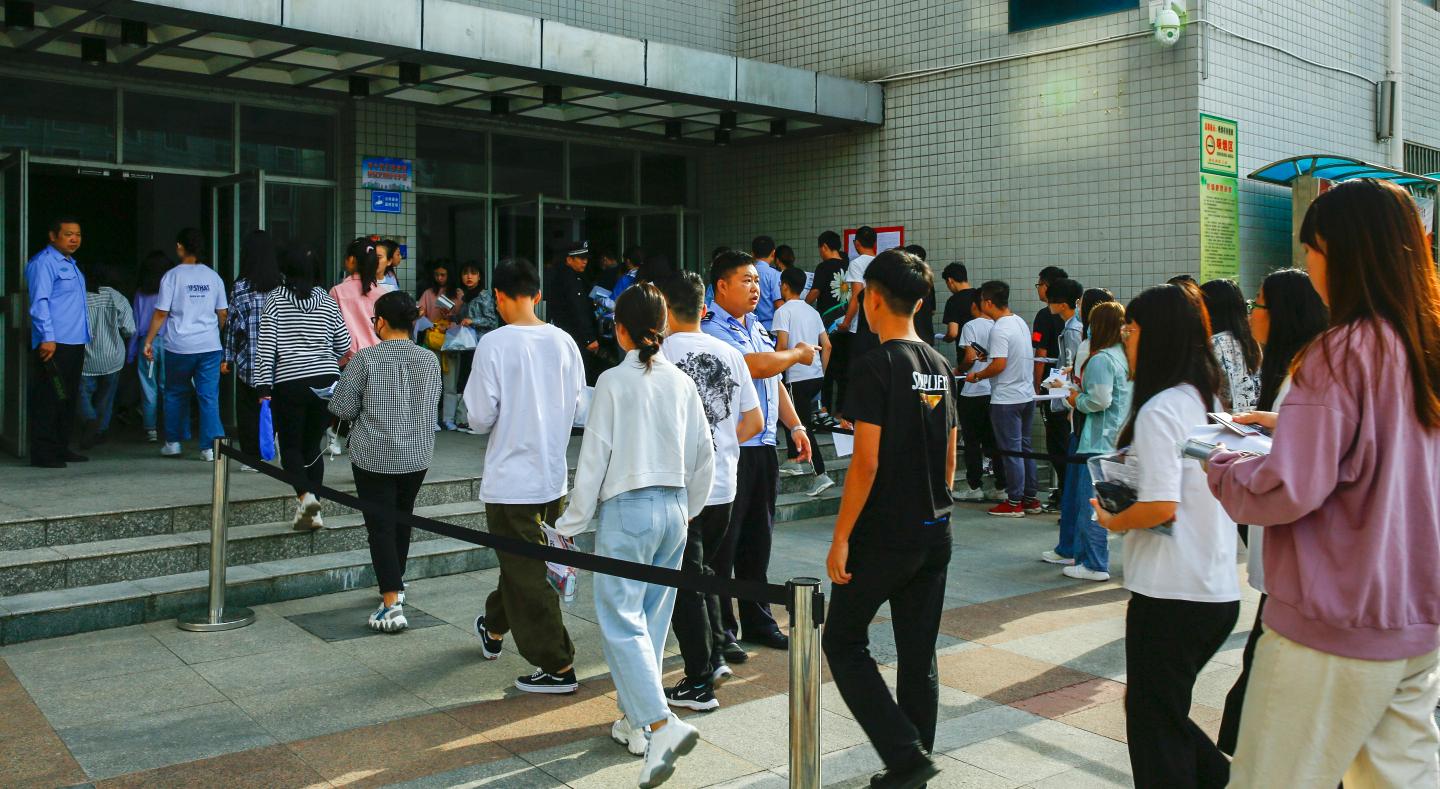 活动开始之前,志愿者们积极进行准备工作。每个服务点由4至5名志愿者组成,他们热心地帮助考生保管手机及辅导资料等物品,并在服务之余为考生们加油打气。