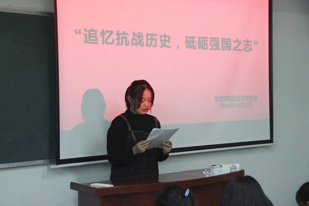 为弘扬爱国主义精神和革命英雄主义精神,10月25日19:30申博SUNBET于2号楼210教室召开以“追忆抗战历史,砥砺强国之志”的主题团课。20级团干,19级所有院干及18级部分同学参加了此次会议。本次会议由团总支王雨彤主持。