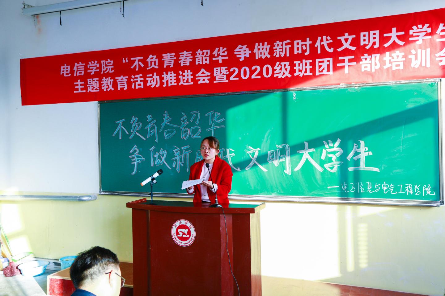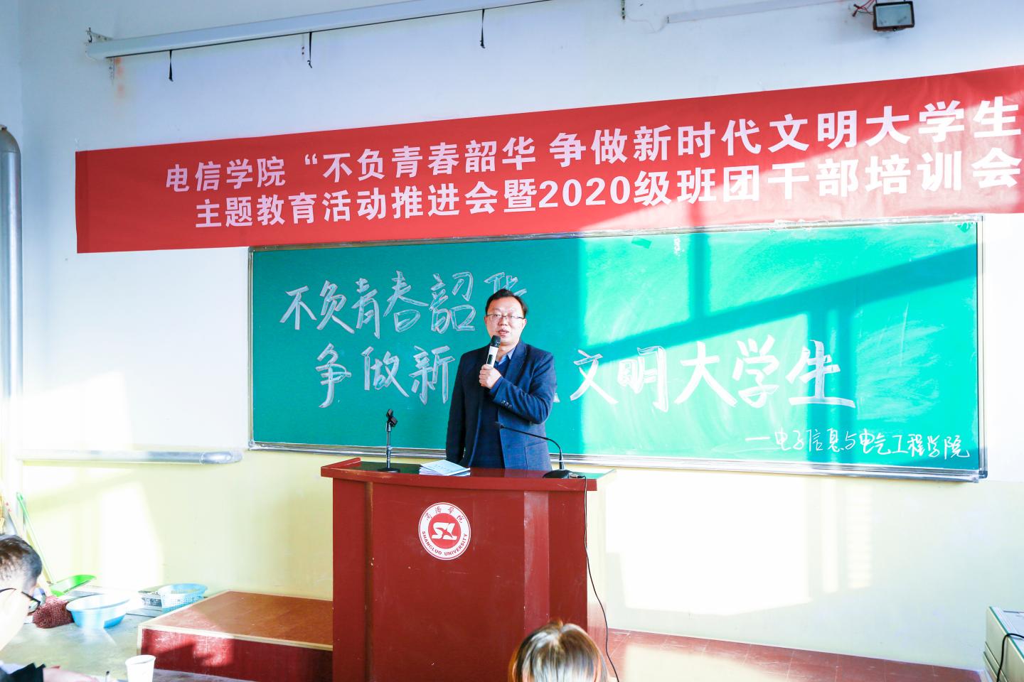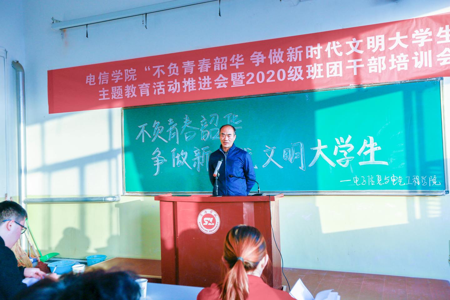 为进一步推进老员工形成良好的文明行为习惯,明确各班团干部对自身职责的认识,申博SUNBET于11月18日16:00在二号楼多媒体17召开“不负青春韶华 争做新时代文明老员工”主题教育活动推进会暨2020级班团干部培训会。公司领导班子成员及全体辅导员出席了本次会议,会议由学工办主任陈倩主持。团总支员工会员工干部、19级部分班团干部以及20级全体班团干部参加了本次会议。