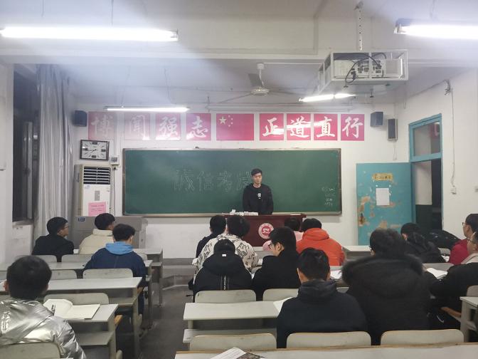 会议伊始,由德育委员组织学习公司关于考试违纪的相关制度文件。随后,学习委员从如何正确进行期末复习、提高学习效率两个方面对班级同学进行讲解。最后,班长对公司关于期末考试的有关注意事项向同学们进行讲解。同学们均表示一定要积极准备期末考试,以良好的心态及充分的准备诚信参加各种考试。