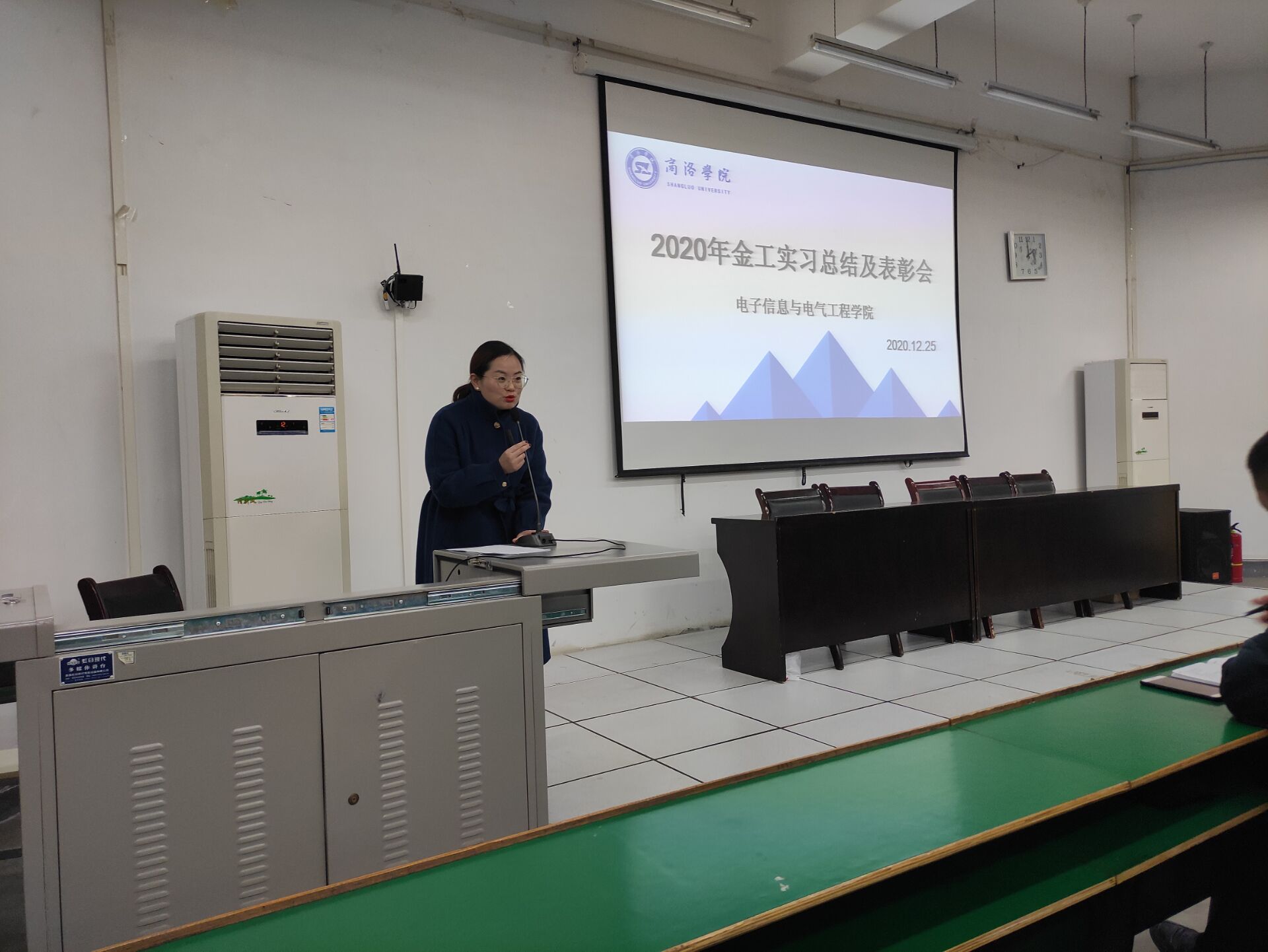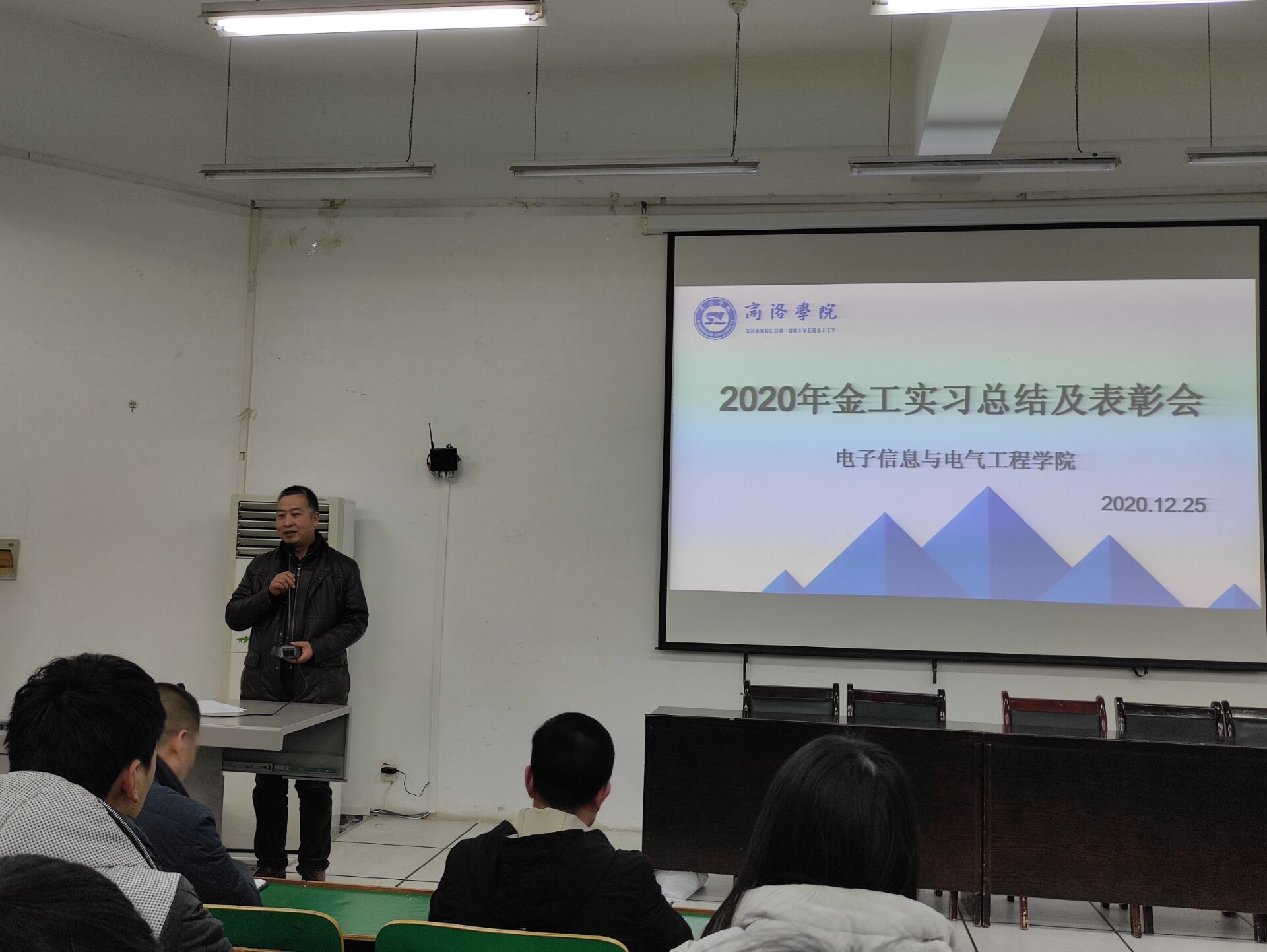 12月25日下午,公司在公司1号教学楼报告厅一召开了2019级金工实习总结表彰大会。申博SUNBET副经理刘爱军、实习合作单位商洛技工公司贺亚武老师出席了大会。会议由人工智能系副主任刘皎主持。全体实习带队教师及2019级300余名员工参加了本次总结表彰大会。