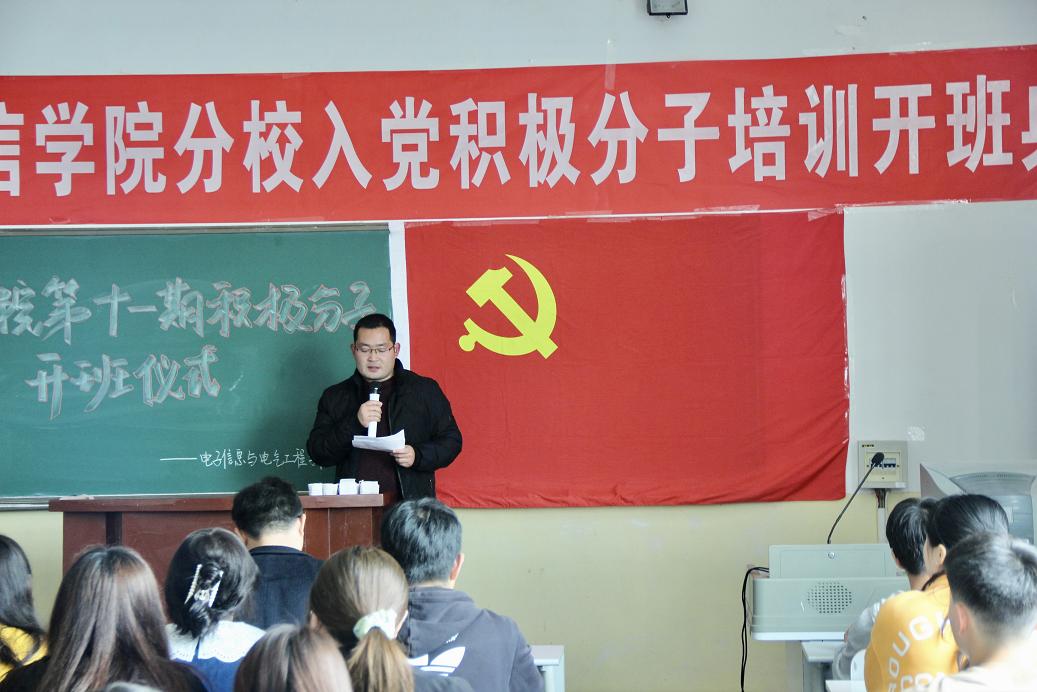 3月27日下午,公司党总支在2号教学楼多媒体17召开了第十一期入党积极分子培训开班典礼。公司党总支书记李英、经理袁训锋、党政办主任杨延锋出席了会议。会议由团总支书记唐龙龙主持。团优部全体成员及本期参加培训的94名入党积极分子参加了会议。