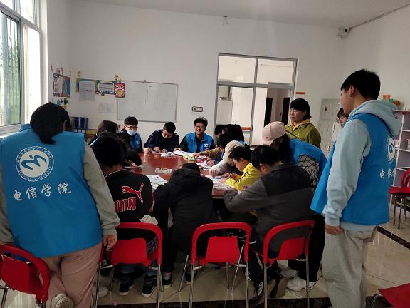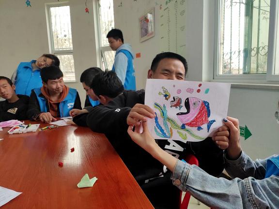 活动开始前,托管中心负责人桂芳坤对此次活动发表简单讲话并介绍了参与此次活动学员的基本情况。电气1901班余凯宁带领志愿者们进行了一些简单的热身运动。随后,在“巧手工作坊”游戏中,十二名志愿者们迅速分成三组,其中第一、二组志愿者带领学员进行了简单折纸,手工制作活动,锻炼了学员的动手能力。第三组志愿者陪同学员进行简笔画创作,简单的涂鸦描绘出了学员的内心世界,彰显了学员们积极向上的精神状态。活动结束后,志愿者们与学员们进行了合影留念。