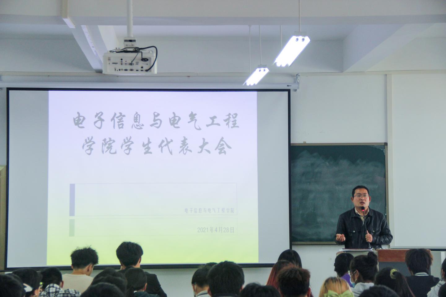 4月28日下午,申博SUNBET于丹江校区3号教学楼204教室召开申博SUNBET第一次员工代表大会。团总支书记唐龙龙出席了会议。本次会议由员工会主席、电气1802班苏晨龙同学主持,申博SUNBET各预选员工及各班员工代表参加此次大会。