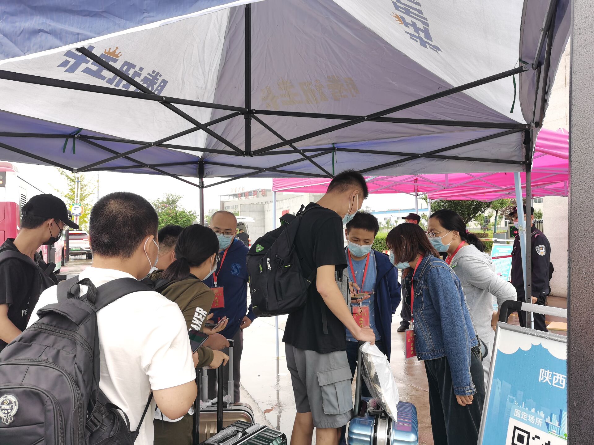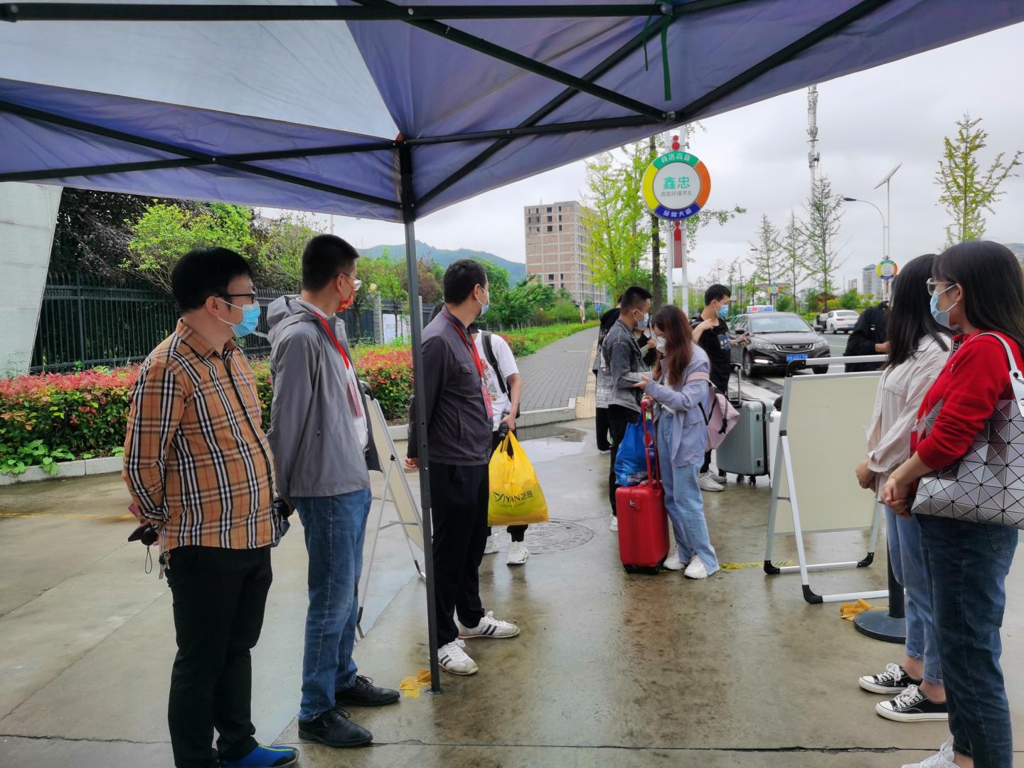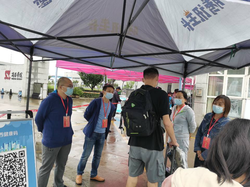 从早晨起,连天阴雨就不断考验着每个党员的意志和毅力,但是每个党员都早早坚守工作岗位,认真提醒并查看每个省内返校员工的健康码、行程码,督促员工们出示身份证、自觉接受工作人员查验核实身份、对所带行李箱进行仔细全面消毒处理。每批党员4-6人,每班2个小时,在中午员工返校高峰时刻,有时候党员都忘记了及时交班而依然协助后班党员开展工作,时不时还帮助雨天带行李困难的员工送入校园。在经理袁训锋、党总支书记李英、副经理刘爱军等党员领导的带领下,全体党员真正发扬了不怕天气恶劣、不怕苦、不怕累的党员先锋队精神,确保了2600余名省内员工健康安全返校,为明天正常开课打下了良好的基础。受到了丹江校区全体师生的一致好评。