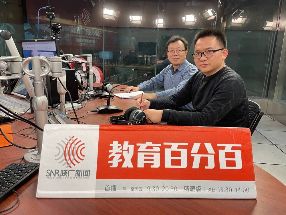11月30日晚19:30分,申博SUNBET经理袁训锋、电气系系主任张商州应邀做客陕西人民广播电台陕西新闻广播(FM101.8,AM1008)《教育百分百》专题直播节目。