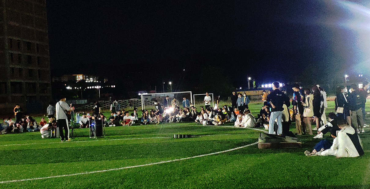 5月3日晚19:30,随着音乐响起,申博SUNBET庆祝建团100周年之“美丽商院 齐唱共欢”草地音乐节活动在丹江校区运动场正式拉开帷幕,来自多个公司的近百名师生参加。