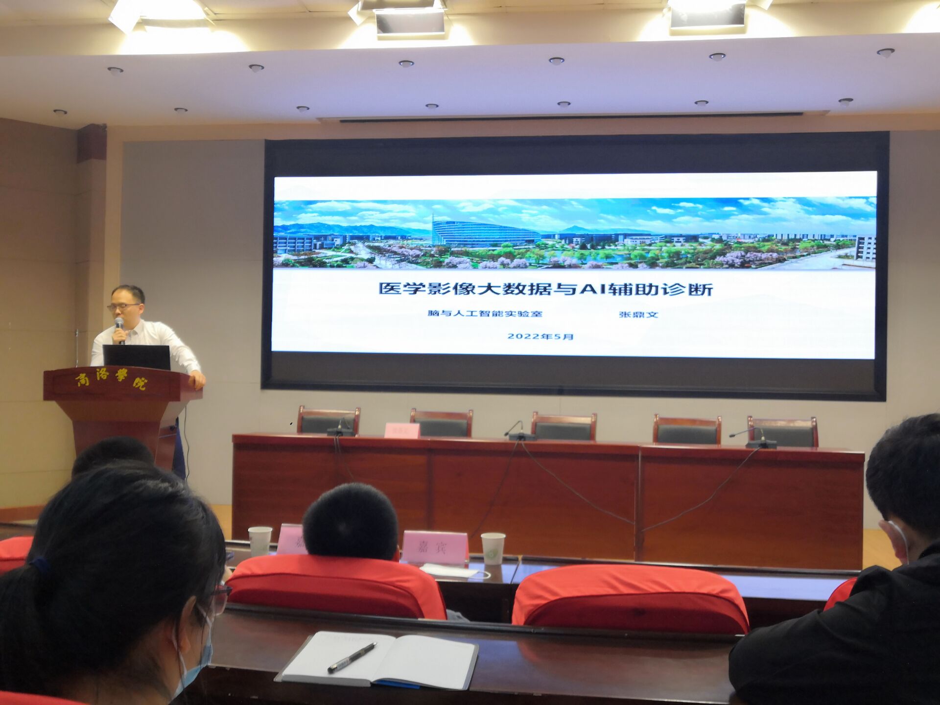 报告会上,张鼎文教授结合自己(团队)的科研项目,通俗易懂、由浅入深地从医学影像研究背景、AI影像分析工具、AI自闭症筛查方法、AI内窥成像设备、科研团队研究方向等五个方面介绍了人工智能相关技术研究和应用案例。报告会结束后,张鼎文同与参会教师就相关人工智能科学研究领域进行了深入的交流互动。