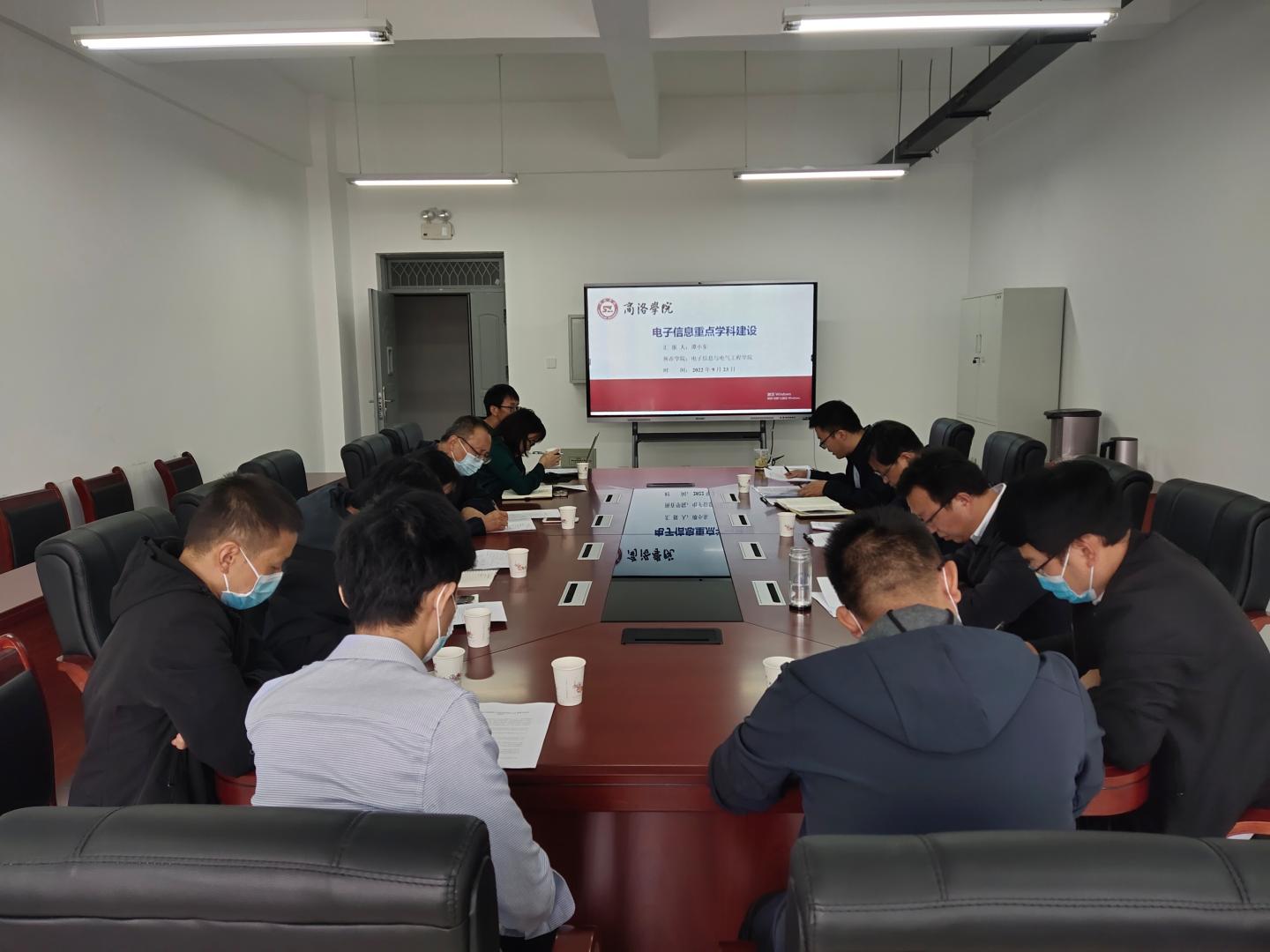 首先,学科办朱小强主任对申博SUNBET校级重点学科电子信息的目标任务、方向凝练、建设路径等方面进行提出建设性意见。随后,延永详细汇报了团队建设任务的审定原则和结果,建议瞄准电子信息申硕条件重新完善建设任务指标;谭小东详细汇报了电子信息学科研究方向、发展目标,以及目前存在的问题;学术带头人刘宝盈从公司的学科发展布局、建设、培育等方面作了深入说明。