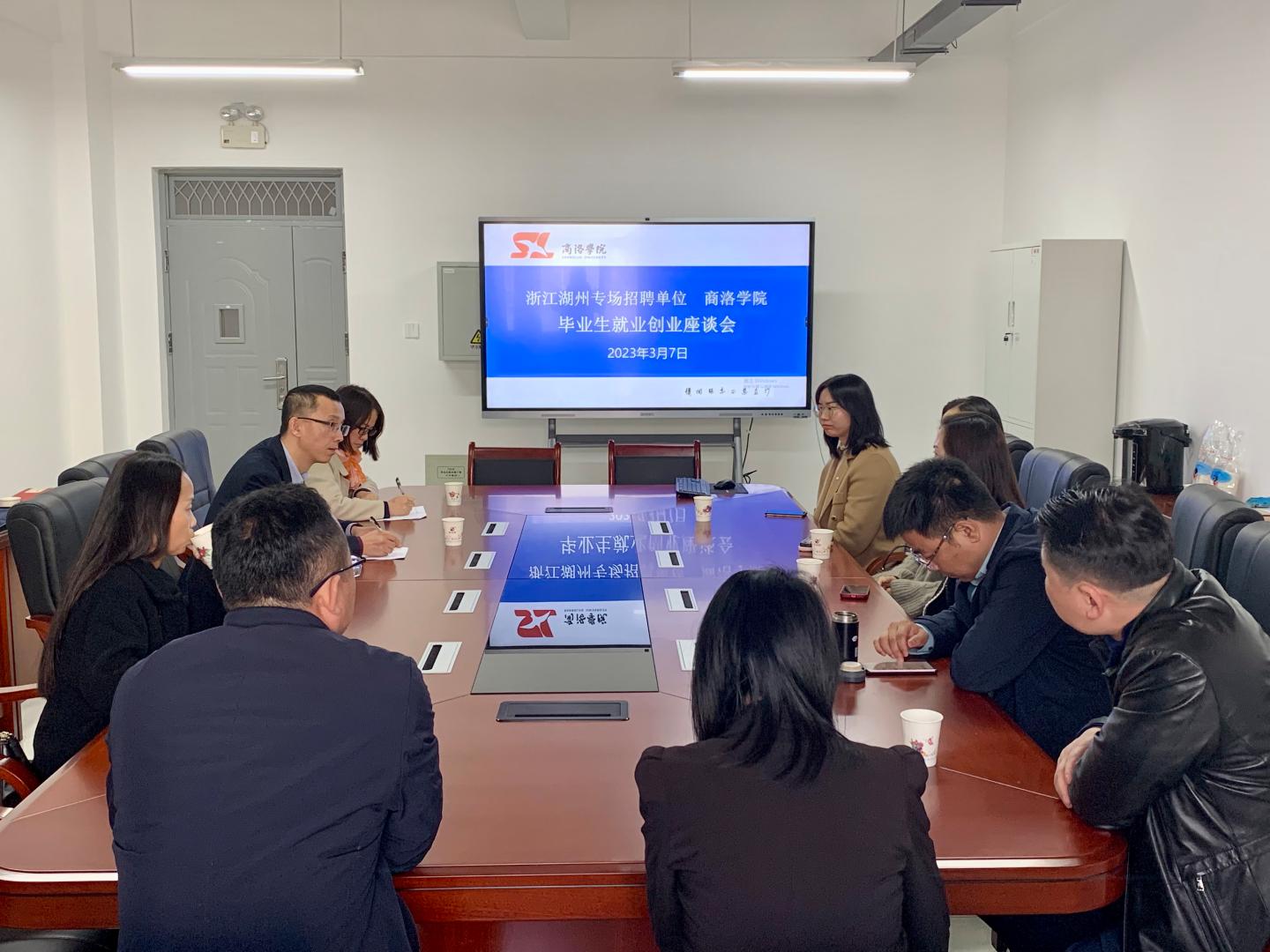 为贯彻落实教育部、省教育厅关于“访企拓岗”促就业专项行动工作部署,对接企业用人需求,拓宽毕业生就业渠道和资源,全力促进毕业生更加充分更高质量就业,3月7日,公司在浙江湖州城市综合推介会暨2023年湖州市-申博SUNBET专场人才招聘会召开之际,特邀浙江华远微电科技有限公司、天能帅福得能源股份有限公司、泰鼎新能源(浙江)有限公司、浙江晶正光电科技有限公司、浙江悦达塑业股份有限公司、浙江华美冰箱有限公司及湖州各县区人社局代表在申博SUNBET312会议室召开校企战略合作与供需洽谈会。公司教学副经理李亚文、学工办主任陈倩及全体辅导员参加会议,会议由公司党委书记赵永平主持。