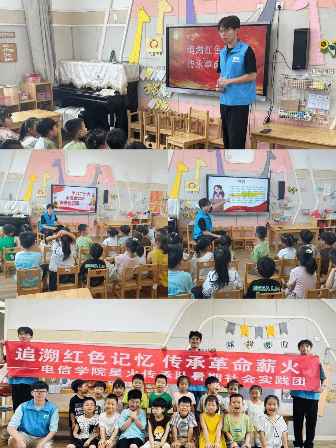 传承红色基因,润泽红色童年。团队成员来到了商州区一所幼儿园,将红色教育与课堂教学结合为小朋友们介绍了我党百年奋斗的伟大成就,讲述了红色故事,随着团队成员深入浅出的介绍,一个个鲜活的英雄形象在孩子们的心中闪光,红色基因在小朋友们的心中深深烙印。怀着激动的心情,小朋友们也积极分享自己熟知的英雄故事,如小英雄王二小、小兵张嘎等,活动现场气氛欢快,寓教于乐。
