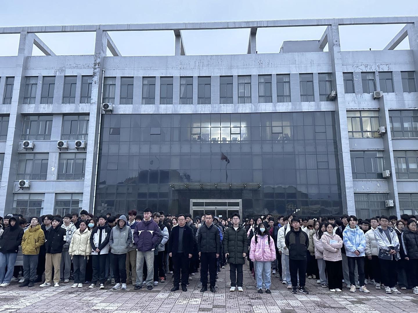 早晨7点,参加升旗仪式的师生列队整齐、精神饱满,伫立在升旗台前。在全院师生的注目礼下,国旗护卫队迈着铿锵有力的步伐护送国旗至升旗台。7点10分,在雄壮的国歌声中,鲜艳的五星红旗冉冉升起,迎风飘扬。全体师生神情肃穆,齐唱国歌,向庄严的国旗表达最崇高的敬意。