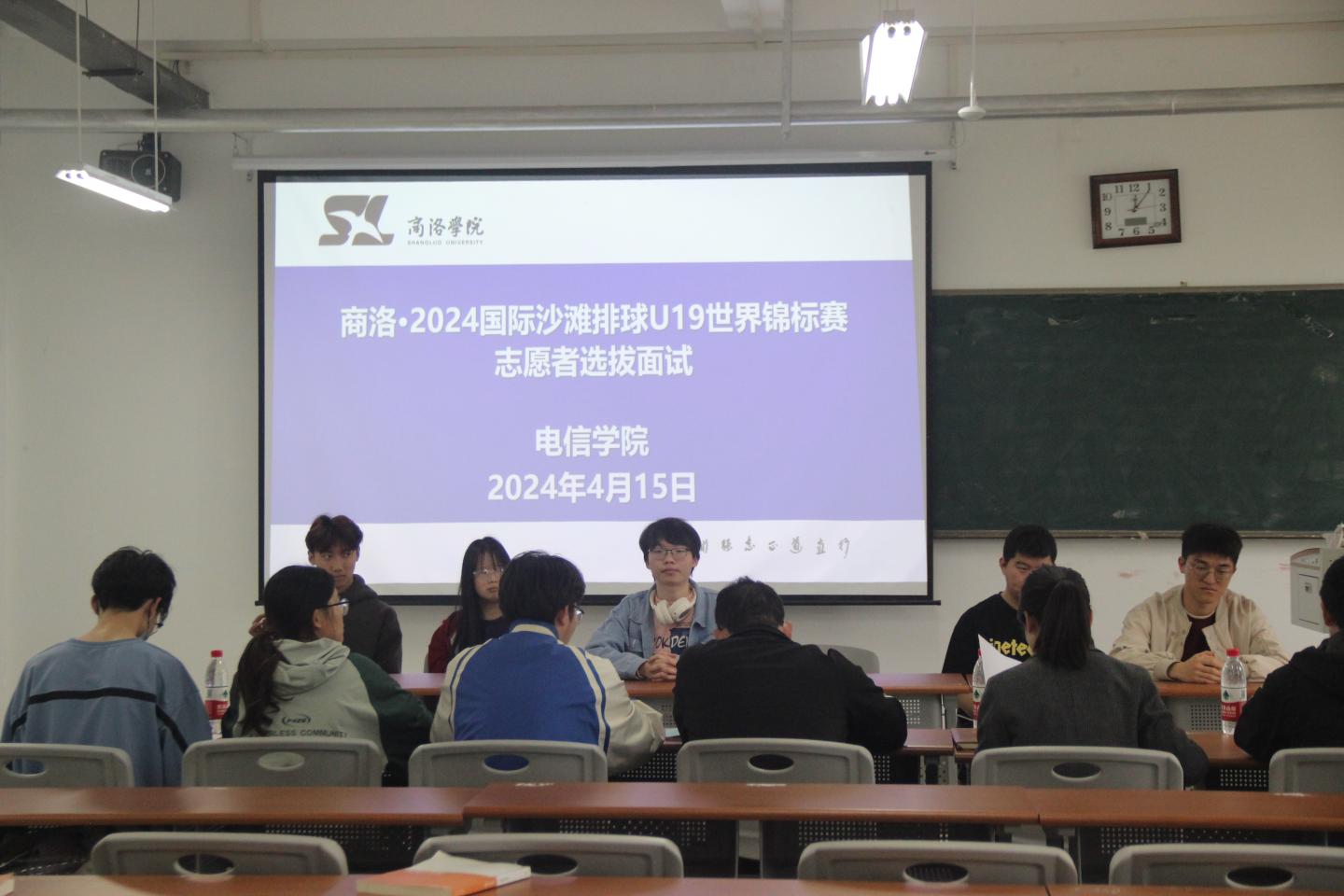 为选拔出朝气蓬勃、训练有素的青年志愿者队伍,4月15日,公司在丹江校区3-105教室开展2024国际排联沙滩排球U19世界锦标赛赛会志愿者选拔面试,校团委副书记王姗、团总支书记唐龙龙等9人组成面试评委。
