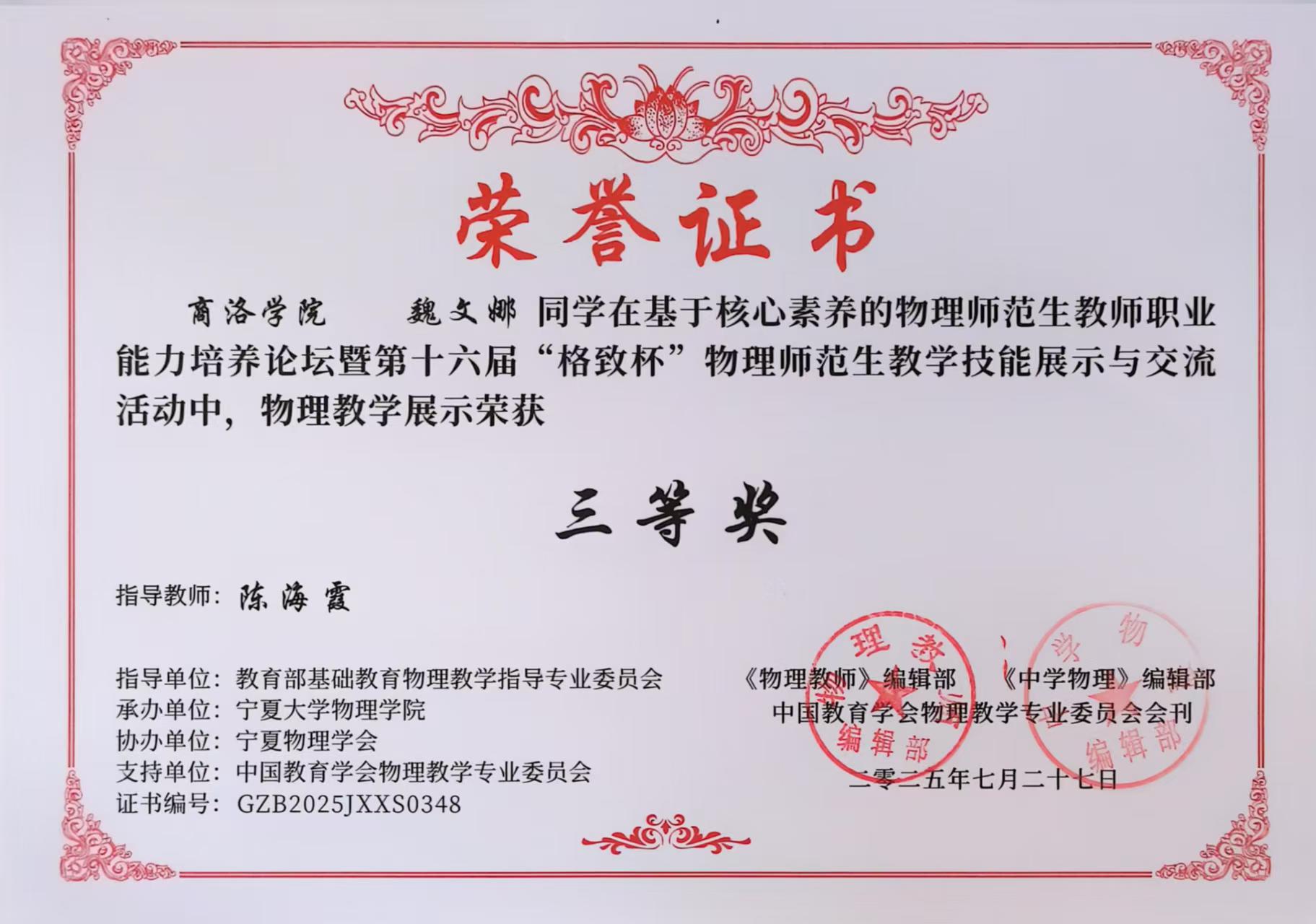 2025年暑假伊始,公司物理学2201班的侯雪婷、魏文娜同学便在指导教师的带领下,全身心投入第十六届"格致杯"教学技能大赛的备赛冲刺中。两位同学不仅潜心钻研教学理论,精心设计教案,还通过模拟授课、互评互学的方式不断优化教学技巧。指导老师全程跟进,从教学内容的逻辑梳理到课堂互动的细节把控,再到板书设计的规范性,给予了细致入微的指导。