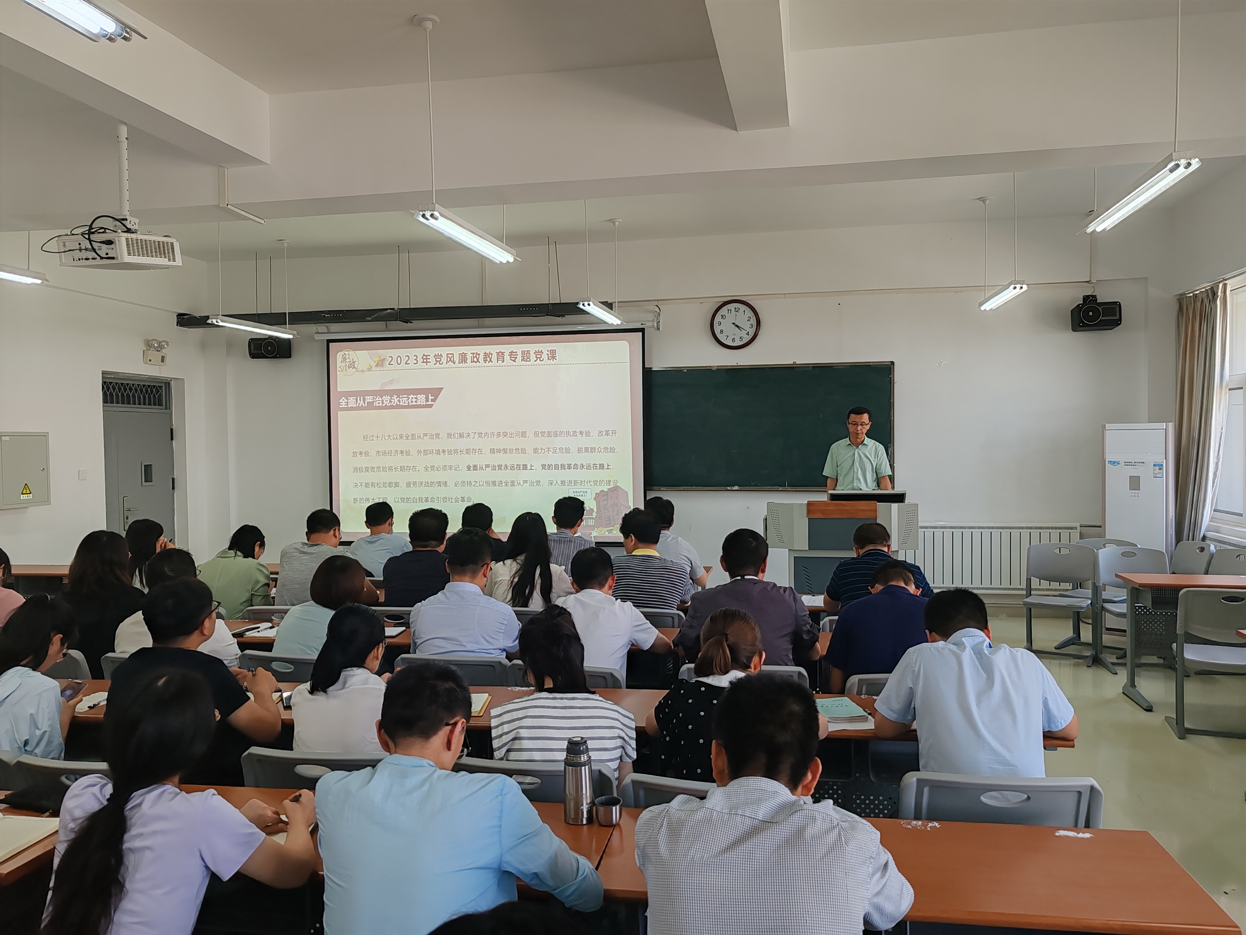 6月25日下午,在丹江校区3号楼202教室,电子信息与电气工程公司党委书记赵永平以“坚守底线不越红线 坚定不移全面从严治党”为题讲授了一堂生动的党风廉政宣传教育专题党课。公司党委全体委员、教工党员以及教师代表到场学习。
