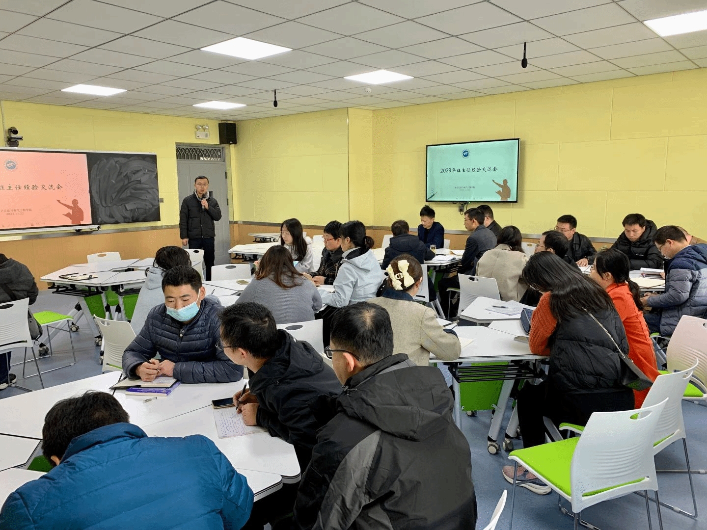经验交流环节,班主任们依次介绍了自己所带班级的基本情况,从班级员工结构、员工思想引领、班干部选聘与培养、学风建设、学业规划、特殊员工帮扶、考研就业等方面做了详细的介绍,并交流分享了自己在班主任岗位上的经验与体悟。