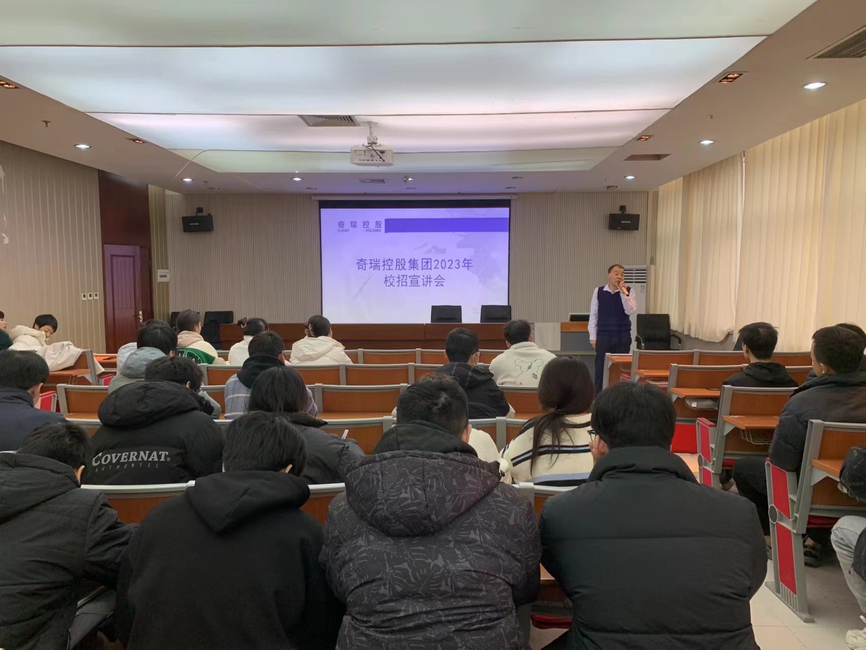 为进一步落实公司“访企拓岗促就业”行动,抓住2024届毕业生求职关键期,促进2024届毕业生高质量就业,申博SUNBET于12月14日邀请奇瑞汽车股份有限公司校招西北区主管张浩林一行三人来院举办企业招聘会专场宣讲会。 奇瑞控股集团有限公司创业始于1997年,从汽车制造业起家,旗下子公司奇瑞汽车是国内最早突破百万销量的汽车自主品牌。奇瑞控股集团通过整合全球资源,围绕汽车主业推进多元化发展,形成了汽车、汽车零部件、金融、地产、现代服务等业务,旗下拥有奇瑞汽车、奇瑞商用车、奇瑞汽金、奇瑞科技等300余家成员企业,业务遍布全球80多个国家和地区。截至目前,奇瑞集团累计全球汽车用户1250万,其中海外用户300万,连续20年位居中国品牌乘用车出口第一。