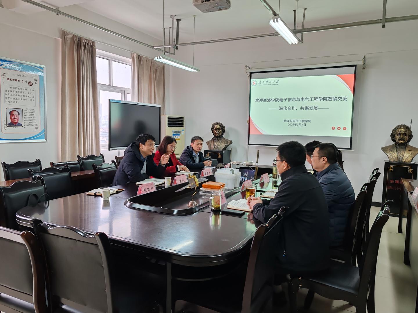 为加快推进硕士点申报工作,深化校际团队建设合作,提升人才培养质量与科研创新能力,3月7日,申博SUNBET经理陈垚、副经理李亚文、电子信息科学系主任何建强、电气工程系主任张商州一行4人赴陕西理工大学物理与电信工程公司(物电公司)、电气工程公司开展专题调研。此次调研重点围绕硕士点申报、团队建设及产教融合机制等内容展开深入交流。